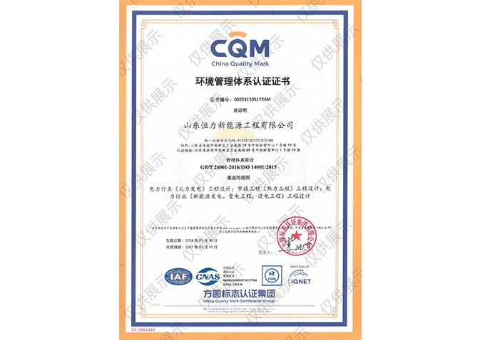 環(huán)境管理體系認證證書 GB/T 24001-2016/ISO14001:2015