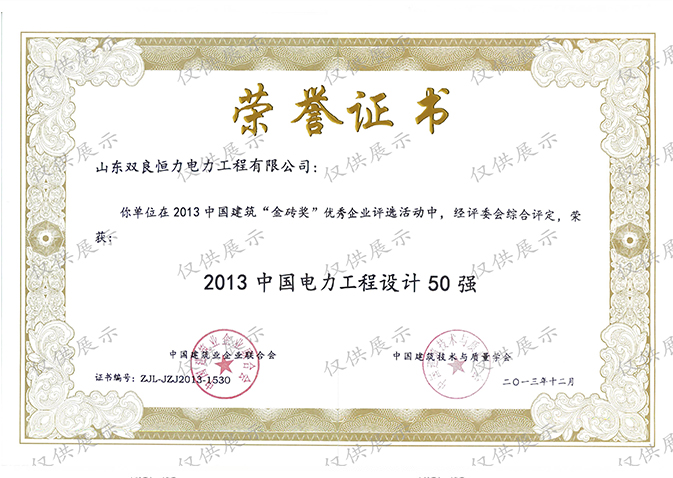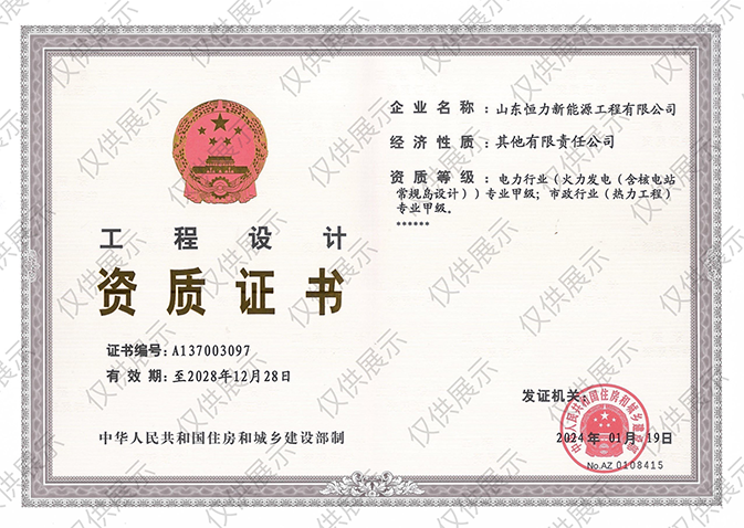 工程設(shè)計資質(zhì)證書:電力行業(yè)(火力發(fā)電(含核電站常規(guī)島設(shè)計)專業(yè)甲級;市政行業(yè)(熱力工程)專業(yè)甲級