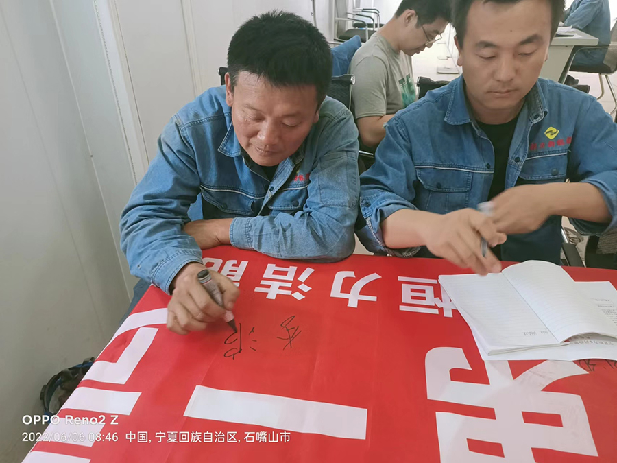 寧夏新力生產(chǎn)部組織運(yùn)行人員在安全條幅簽字。