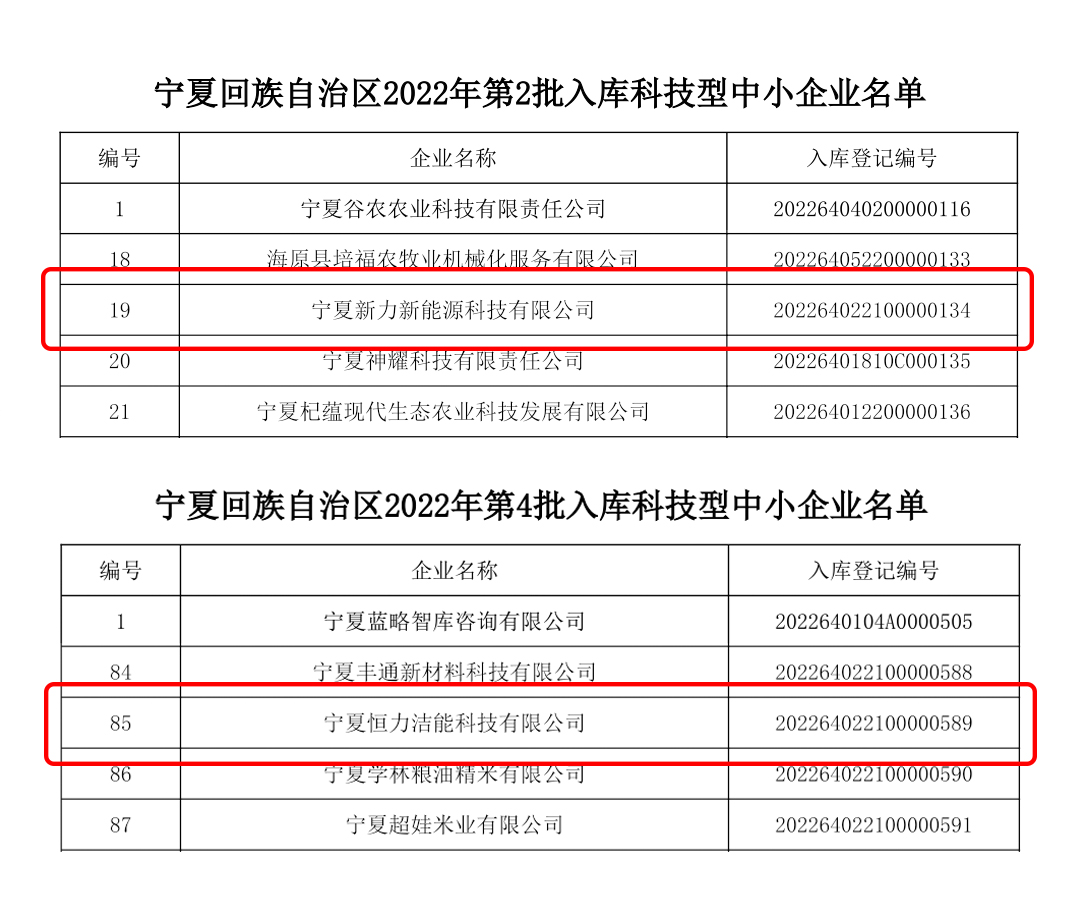 恒力集團(tuán)喜迎佳音,集團(tuán)子公司寧夏新力新能源科技有限公司、寧夏恒力潔能科技有限公司經(jīng)寧夏科技廳審核,順利通過認(rèn)定,雙雙成為2022年寧夏回族自治區(qū)庫科技型中小企業(yè)。