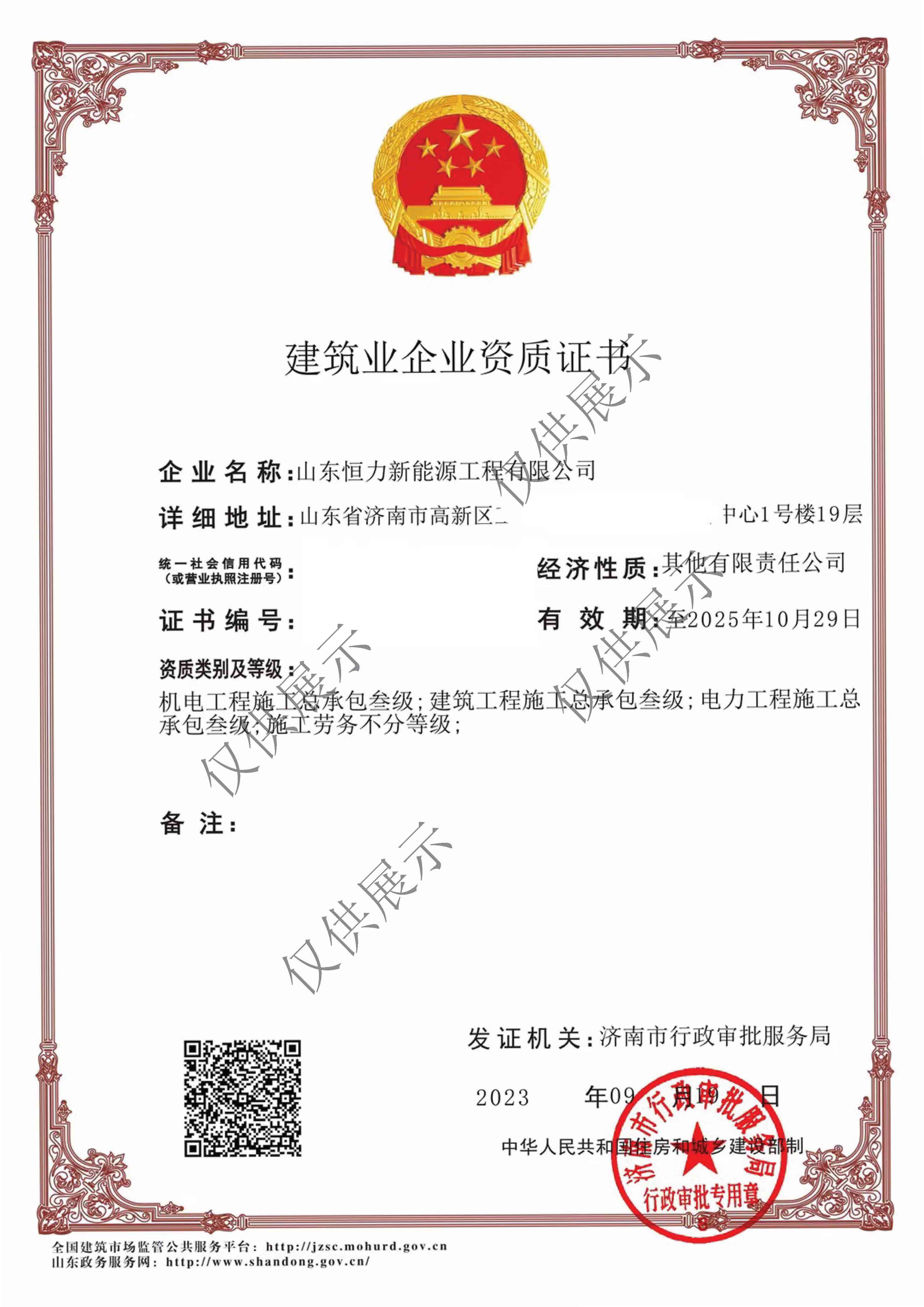 2023年9月,集團(tuán)成功取得了市行政審批局頒發(fā)的“建筑業(yè)企業(yè)施工勞務(wù)資質(zhì)”