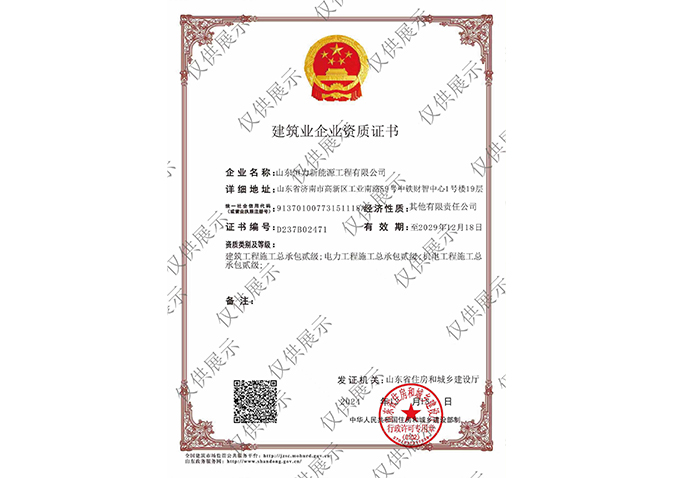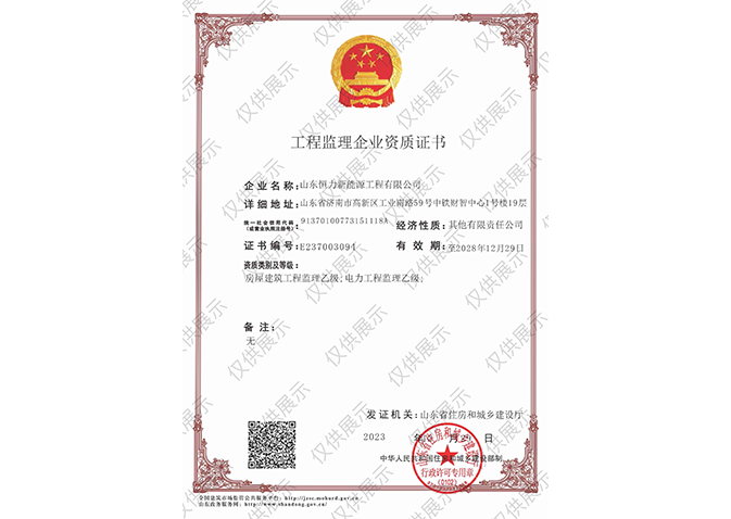 工程監(jiān)理企業(yè)資質(zhì)證書:房屋建筑工程監(jiān)理乙級;電力工程監(jiān)理乙級