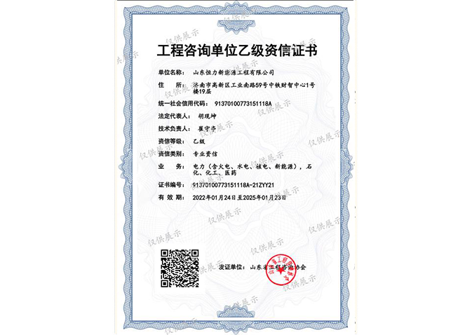 工程咨詢單位乙級資信證書