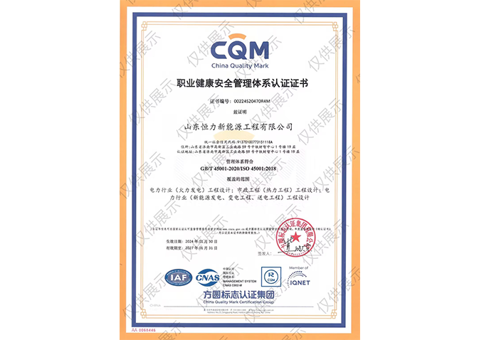 職業(yè)健康安全管理體系認證證書GB/T 45001-2020/ISO 45001:2018