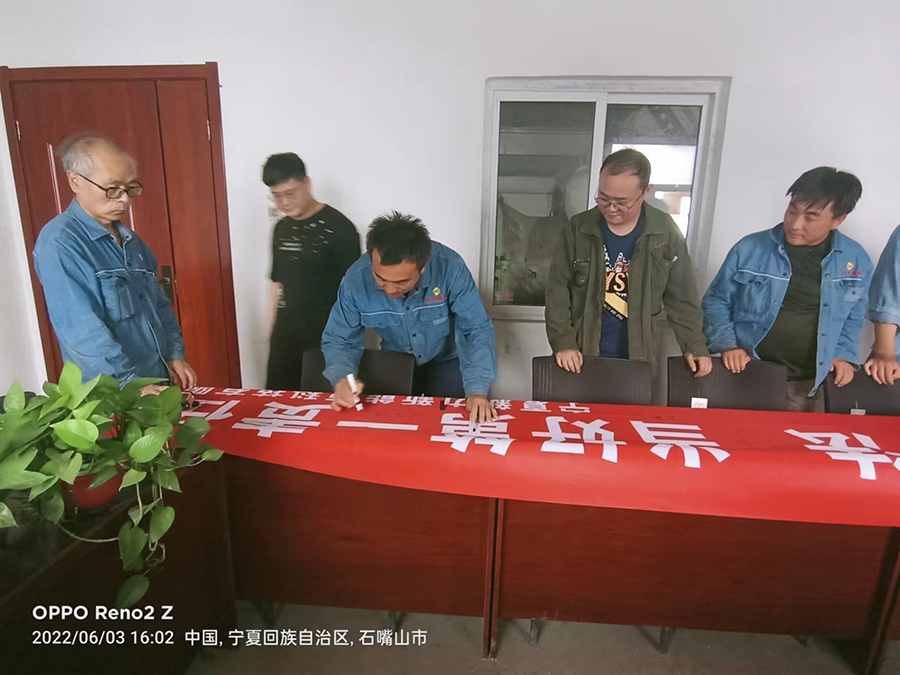 寧夏新力生產(chǎn)部組織運(yùn)行人員在安全條幅簽字。