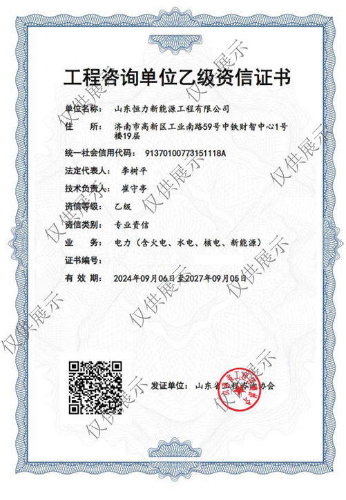 近日,山東恒力新能源工程有限公司順利通過山東省工程咨詢協(xié)會(huì)的核準(zhǔn),成功延續(xù)了電力專業(yè)咨詢乙級(jí)資質(zhì)。